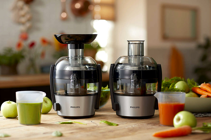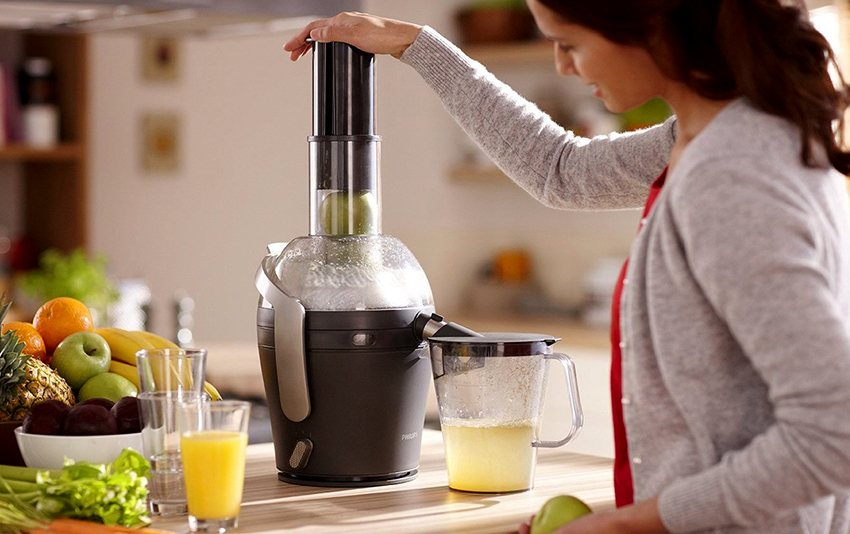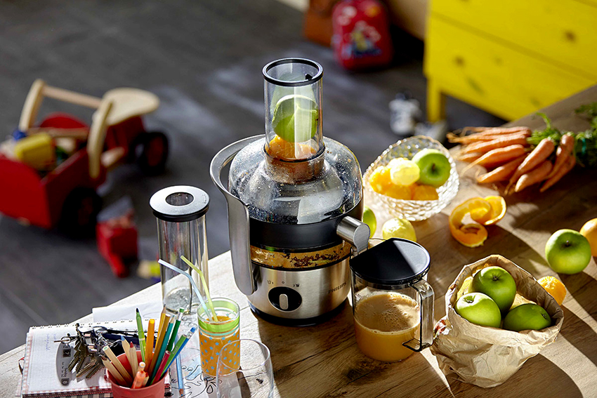 A good device is the 800W Philips HR1922 centrifugal juicer. The body and separator are made of stainless steel, which contributes to the reliability and durability of the unit. The neck has a diameter of 65 cm. The model is equipped with a 1 liter juice glass and a 2.1 liter capacity for moist cake, which is discharged automatically.