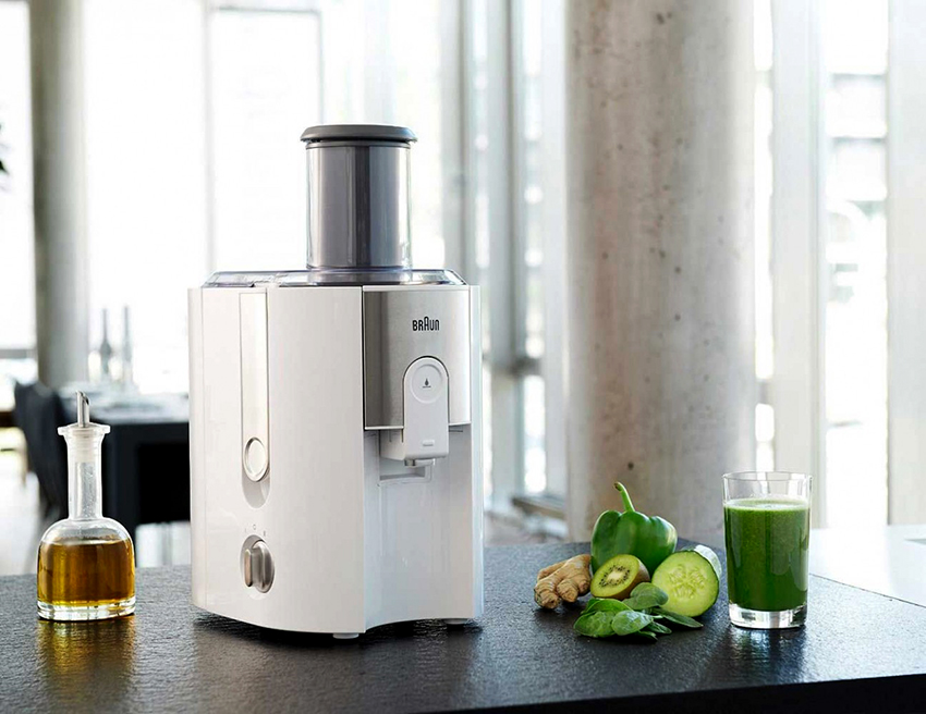 Another inexpensive model is the Brаun J500 Multіquick 5 centrifugal juicer, which is distinguished by its stylish design and advanced functionality. The power of the device is 800 W. The model is equipped with a 1.25 l juice glass and a 2 l pulp container. The moistened cake is automatically fed into the container. The separator helps to cut off the foam during operation.