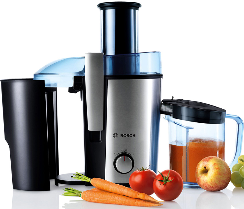 The Bosch MES4010 Vitа Juice4 centrifugal juicer, with a power of 1200 watts, is recognized by consumers. It is equipped with a wide feed opening to process whole fruits. The body and separator of the device are made of stainless steel. The capacity for juice has a volume of 1.5 liters, and for cake - 3 liters.
