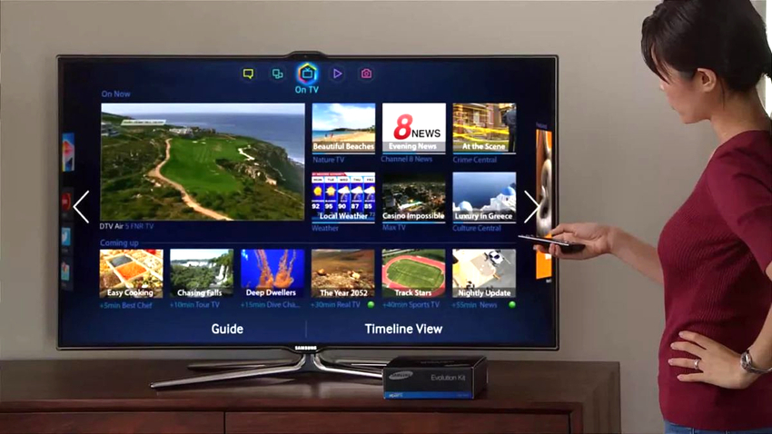 Samsung UE55JS8500T features a curved screen with UHD or 4K resolution, support for 3D format and Internet access. The main disadvantage of the curved model is that you need to view the programs directly in front of the screen. The technology, thanks to the 40 W speakers, provides surround sound. You need to buy 3D separately.