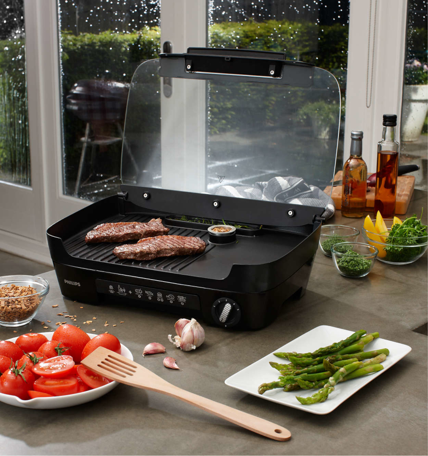 Philips is a Dutch brand that has long been firmly entrenched in the Russian (and also in the world) market. If you try to make a general comparison of electric grills from this manufacturer and other foreign companies, then the main difference will be the average size of desktop devices, on which you can cook a significant amount of food at a time. It is for this operational quality that many users consider Philips models to be the best electric grills for the home.