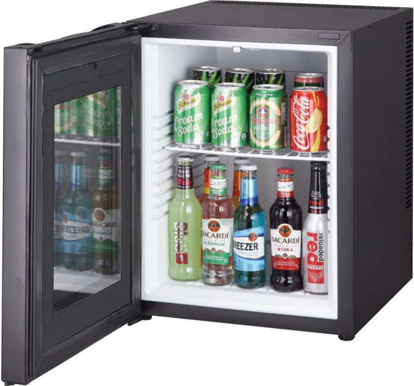 A small bar fridge with a glass door will be an original addition to the interior of a kitchen or commercial establishment. A transparent door in a metal frame will accentuate the elegant interior, perfectly complement the high-tech or loft style, and customers will be able to quickly familiarize themselves with the range of products. The compact model will easily fit into the bar counter and will suit owners who cannot fit a large refrigerator at home.