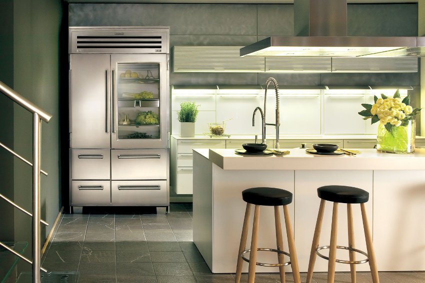 Refrigerators have long been a prerequisite for a comfortable life. The diversity of the range of household appliances pushes developers to add elements to simple details that are characteristic of new designs and styles. Manufacturing companies have delighted lovers of refined minimalism with a new development. A refrigerator with a transparent door not only fulfills practical functions, but also acts as an exquisite decor and decoration for the kitchen.