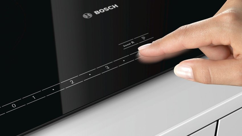 Many Bosch induction hobs are equipped with the PowerBoost function, thanks to which the power for each hotplate can be increased by up to 50%, which helps to shorten the cooking time. In this case, the additional power will be borrowed from the adjacent cooking zone. The surfaces are equipped with electronic sensors that recognize the nature and size of the cookware and adjust the required power. The average cost of Bosch induction cookers is 35 thousand rubles.