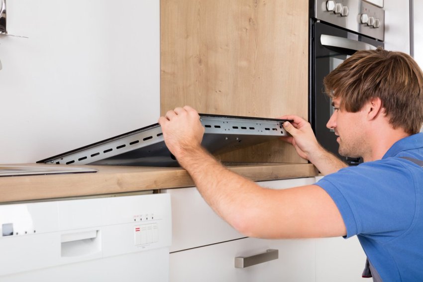 To install the product in the tabletop, a seat is made, the size of which corresponds to the dimensions of the surface of the device.To exclude the ingress of moisture on the end cuts of the chipboard, a furniture edge is glued or a silicone sealant is applied. The correct position of the product is checked using a building level.