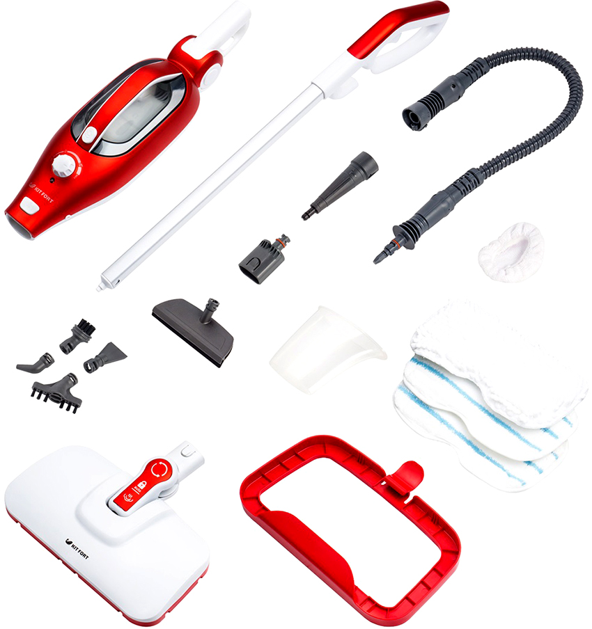 A set of nozzles allows you to clean floor, carpet and furniture surfaces. Contains a stiff brush and 3 microfiber sponges. The built-in stiff brush makes it possible to effectively clean fluffy coatings from wool and hair. The device can work continuously for 40 minutes. The volume of the water tank is 0.7 l. The unit is equipped with a scale filter. The mop is equipped with an indicator for heating water and power. The length of the power cord is 8 m. The price of a steam mop is 9 thousand rubles.
