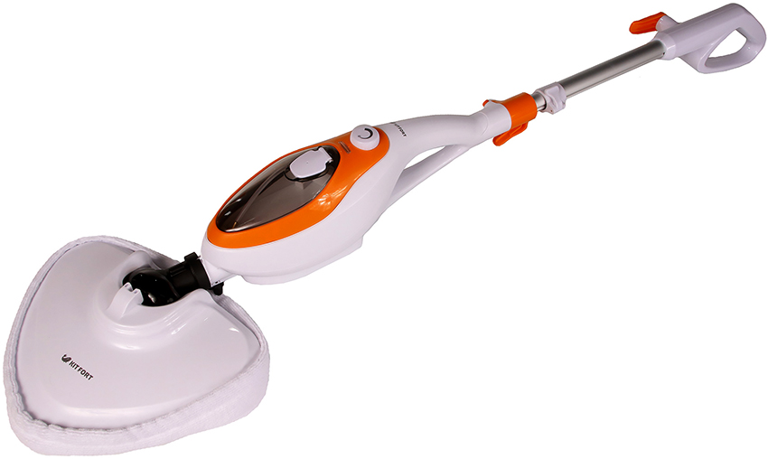 A good budget model is the Kitfort KT-1001 steam mop. The device is equipped with a variety of attachments for cleaning hard, carpet, glass and textile surfaces. The power of the device reaches 1.3 kV. The volume of the tank is 0.35 liters. The device is equipped with a function for adjusting the intensity of steam supply. The length of the cord is 5 m. The cost of the mop is 3.6 thousand rubles.