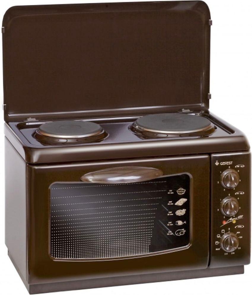 The tabletop electric stove Hephaestus 420 K19 with an oven is distinguished by high functionality and easy use. The hob is equipped with two cast iron burners. The oven has a volume of 18 liters, a grill function, 4 operating modes, a timer and a thermostat. It is able to heat up to a temperature of 260 ° C. The size of the device reaches 55x25 cm. The price of such an electric stove is 6 thousand rubles.
