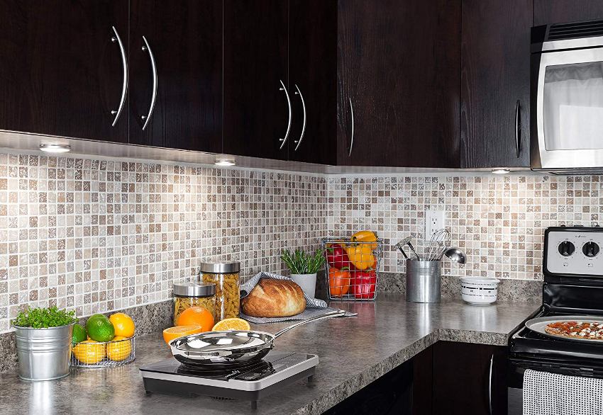 For modern kitchen interiors, an electric tabletop glass-ceramic stove is considered a suitable option.