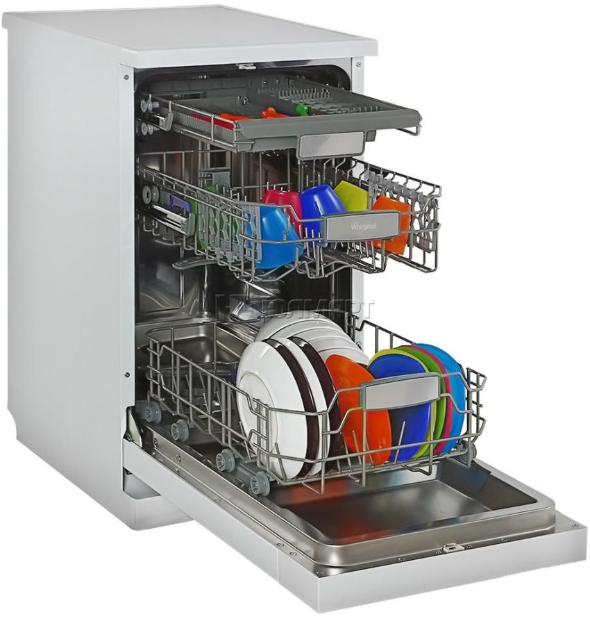 The spacious dimensions of the freestanding dishwashers allow cleaning a large number of dishes and cutlery at a time. However, this characteristic affects the consumption of electrical energy and water. Large devices are 1.5-2 times less economical than small ones.