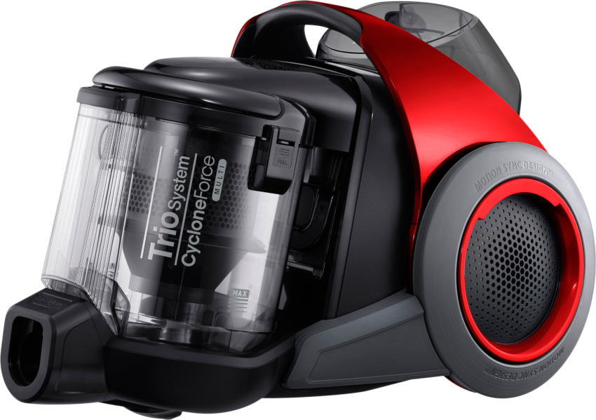 The LG VK88504 HUG model with a 1.2 liter cyclone tank opens the rating of the best vacuum cleaners for the home from this brand. The device is characterized by a high suction power of up to 420 W with a relatively low noise effect of 78 dB. The vacuum cleaner is equipped with a HEPA H13 fine filter. The large length of the cord (8 m) ensures an adequate range of the machine. The power of the device is regulated by a switch on the handle. The set includes four nozzles: carpet / floor, crevice, furniture and turbo brush. You can buy such a unit for 11 thousand rubles.