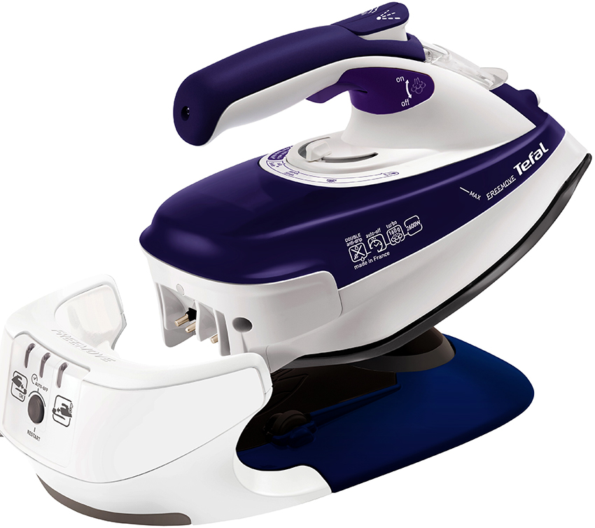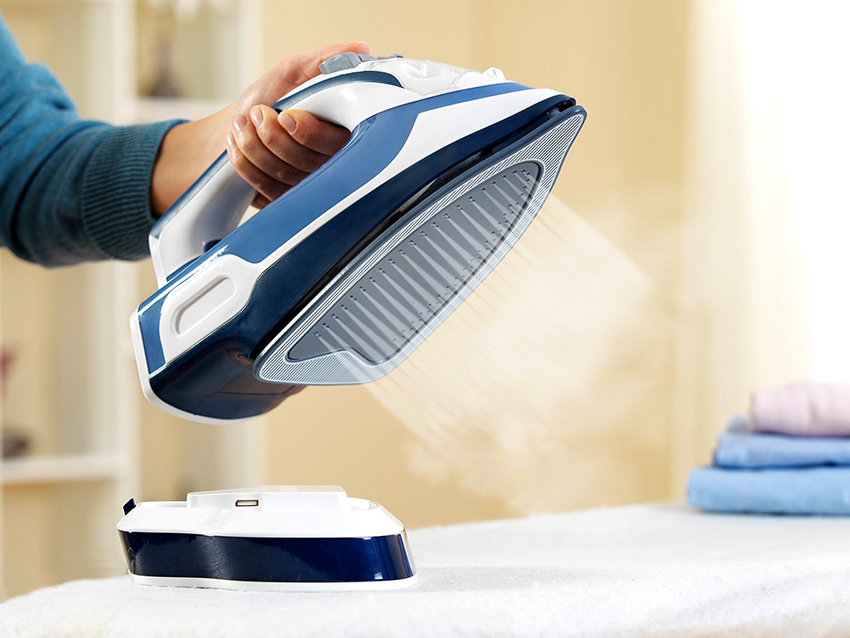 Tefal FV9976. It is considered the best iron for the home (2019 rating) in the category of the most powerful wireless appliances. Due to its autonomy, the model is convenient to use for vertical steaming of things, and the absence of a cord makes it easy to work with small children's clothing or one that has a complex shape. All previously released wireless models were characterized by low power, but Tefal engineers were able to correct the situation and create a 2600 W iron with a maximum steam boost of 200 g / min. In this case, the charging speed when installed on the base does not exceed 4 seconds. Features of operation: