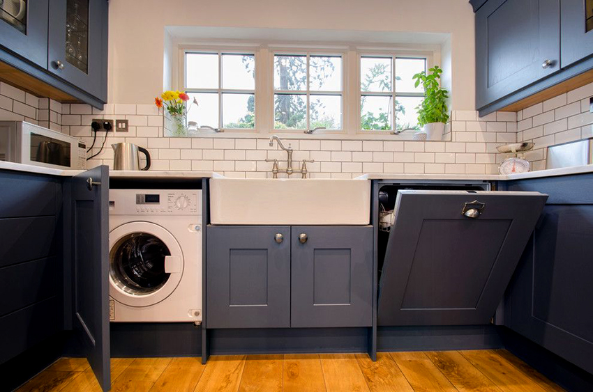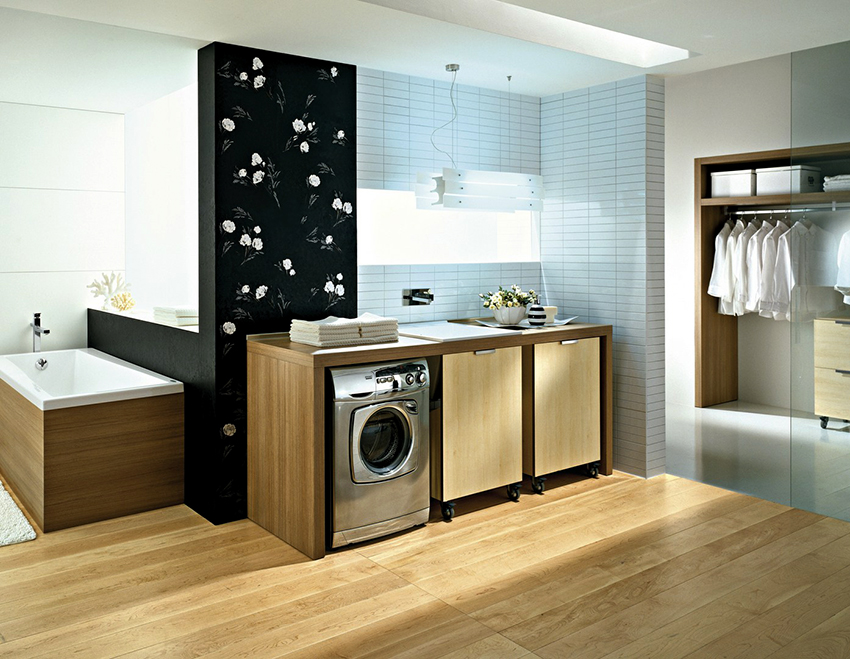 When choosing the dimensions of the washing unit, it is also necessary to calculate the free space in the room that will be used for its installation. It is worth noting that to save the usable area of the room, it is recommended to purchase built-in washer-dryers. They differ from standard technology in that they do not have their own body and are integrated into the furniture.