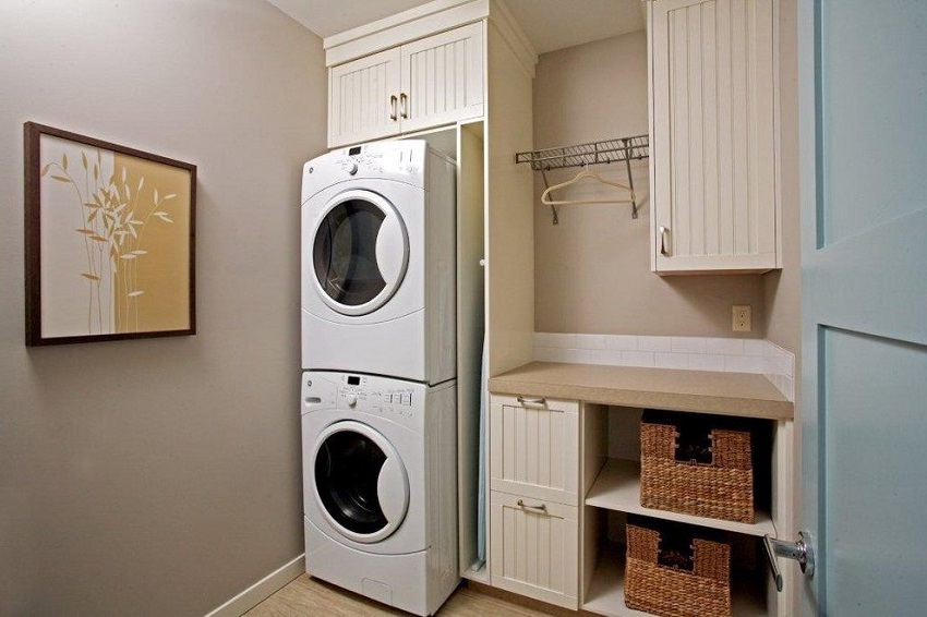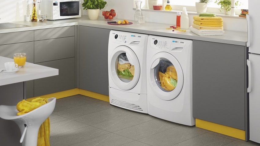 For example, built-in washing machines and dryers are very popular among buyers. It is necessary to pay attention to devices with the possibility of delayed start and the function of half wash.