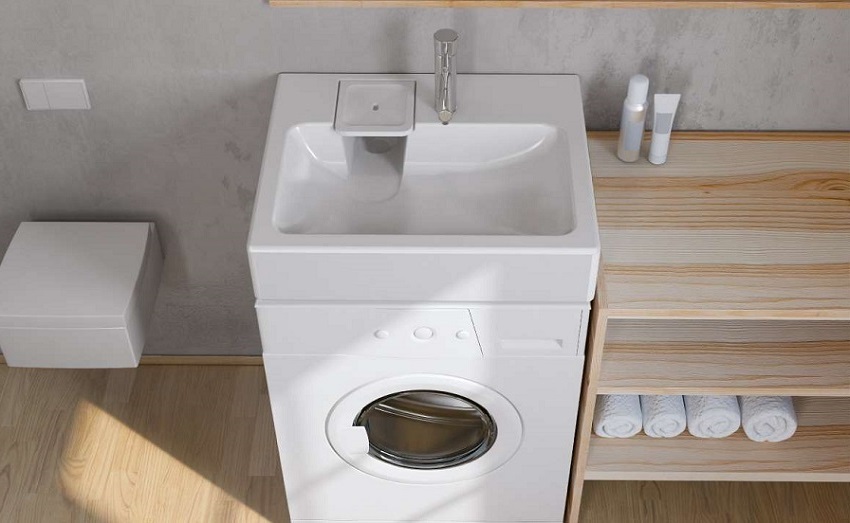 If desired, you can install a sink above the washing machine. Devices built into the kitchen or installed in the bathroom can be easily connected independently. No special knowledge and skills are required to install them.