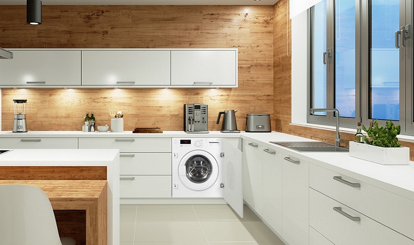 Features of washing machines built into the kitchen