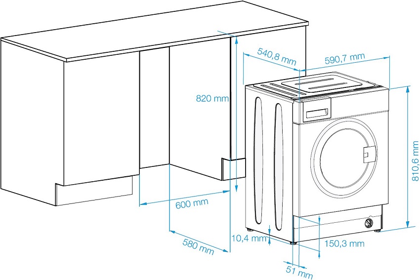 The integrated models of washing machines harmoniously fit into the interior without violating its style. Therefore, such devices are popular in the modern market. The ability to correctly distribute the usable space of a kitchen or bathroom is certainly an advantage.