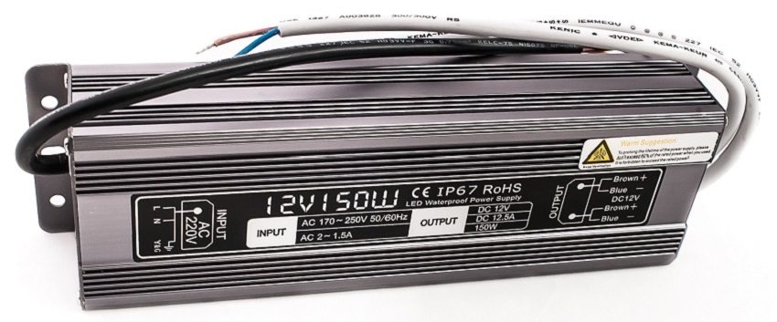 When calculating the power of the power supply for the LED strip, we multiply the voltage and the resulting current value: 12Vx9A = 108 W. Therefore, a stabilizer with a capacity of at least 108W will be acceptable. However, it should be noted that the unit is selected with a 20% power reserve, otherwise it will quickly fail from overload. This means that the required power will be: 108x1.2 = 129.6W, i.e., for this case, the choice of a power supply unit for a 12V LED strip - 150W will be optimal.