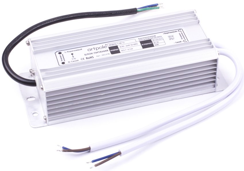 | Power supply unit waterproof 12V 60W IP 67 | 148/40/30 | Power supply 110-220V, power 60W, protection against moisture and dust | 1100 |