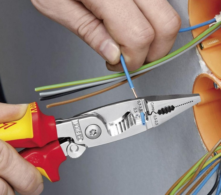 The ends of the electrical wire must be connected to the plug. Stripping of cable products is performed with a special stripping tool. The cartridge is installed from the opposite side. The light comes on.