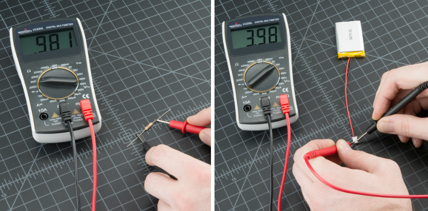 The most common way to test a multimeter with a resistor is to measure the resistance, which should be close to nominal. For this, the tester switch is set to the appropriate position. The red probe is connected to the VΩmA connector, and the black one is connected to COM.