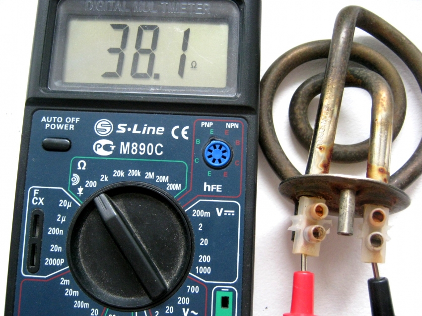 Before you ring the heating element with a multimeter, you should find out its resistance, which will be compared with the reading of the tester. To do this, you must use the formula R = U2 / P, where U is the supplied voltage, P is the power, which is indicated on the device case.