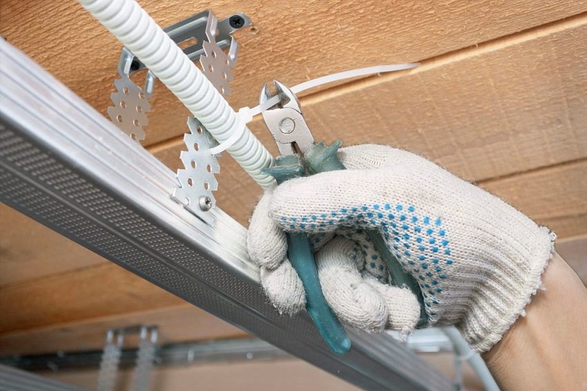 According to the existing scheme, junction boxes are mounted, fixing points of sockets, switches and lighting devices are fixed. If all the walls in the room will be sewn up with finishing material, the cable is laid in a metal sleeve.