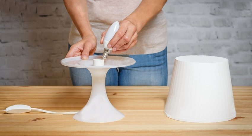 Which is better: LED or energy saving lamp? With regard to light sources used in table lamps, experts recommend the use of LED lamps. They emit a pleasant, uniform light without pulsing, do not burst, do not emit harmful substances and have a minimum heating temperature. The power of the lamp should be selected so that the light is not too saturated and not very dim.