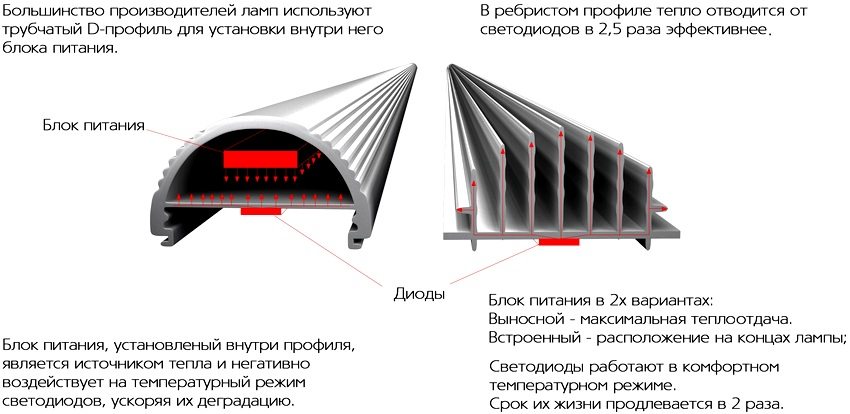 Modern LED lamps have a heat sink made of aluminum or its alloys. The design of such radiators has a spiral arrangement of fins that have different lengths. This shape ensures good air circulation and good heat dissipation. You can navigate the design of the radiator based on the cost of the product itself. The likelihood that you can buy an LED lamp at a low price with a quality heat sink is very small.