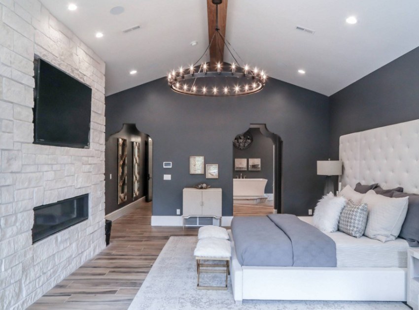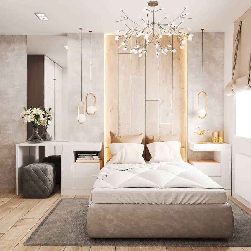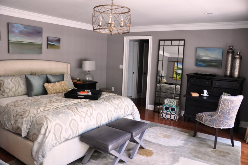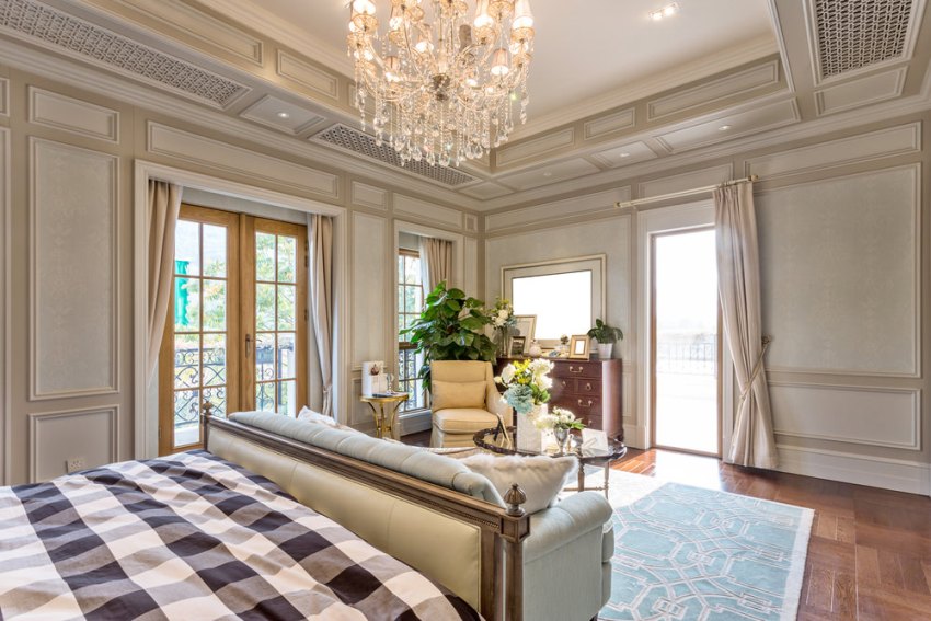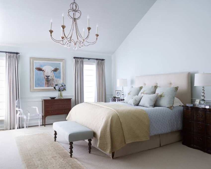 If the bedroom includes a work area, then one chandelier will not be enough to illuminate the entire room.