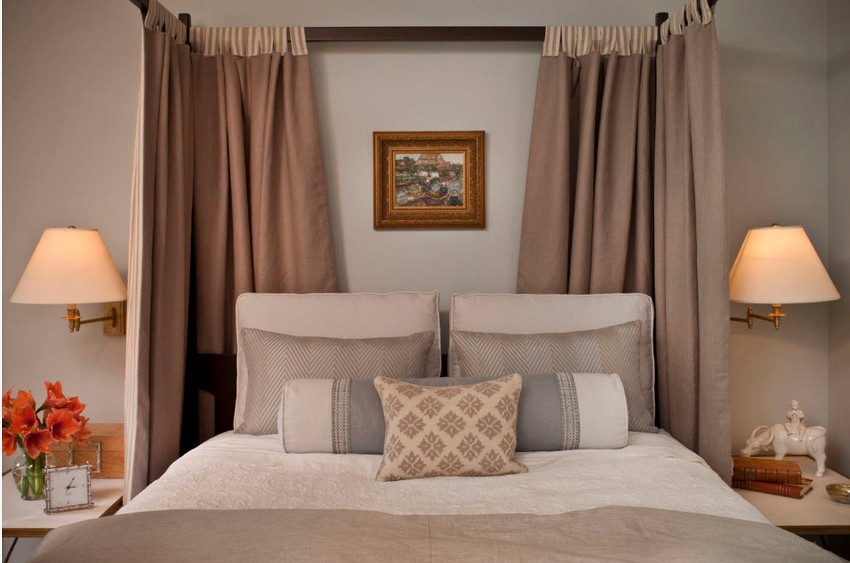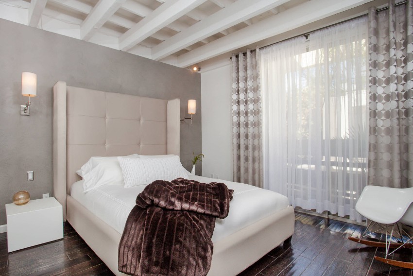 - in cases where sconces suspended above the headboard are used as bedside lighting, it is better to purchase lamps that have the shape of a shell or a hemisphere. Such models limit the spread of light, directing it to the desired area.