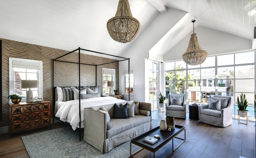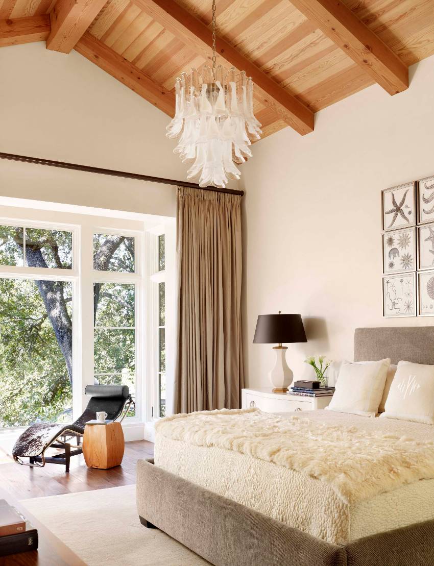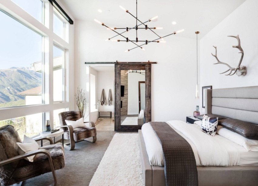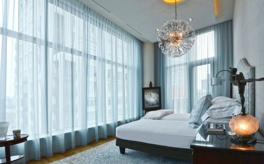 The chandelier should not only look organic in the bedroom, but also provide the necessary level of lighting