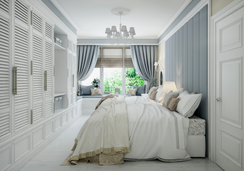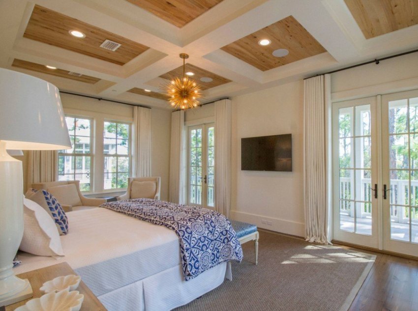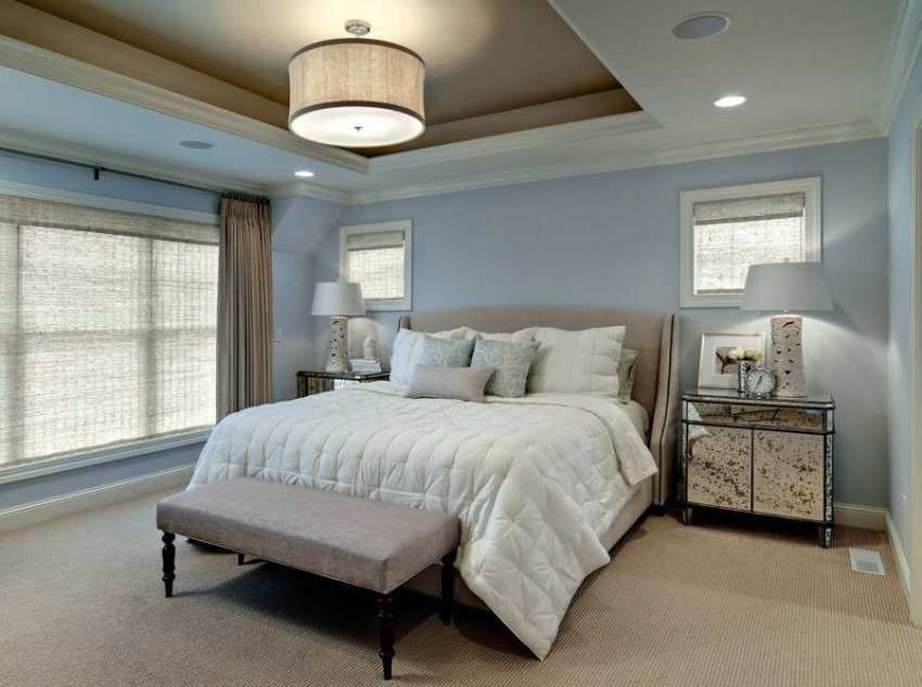 The ceiling in the bedroom should not be visually heavy. This requirement should be observed when arranging lighting in an interior of any style.