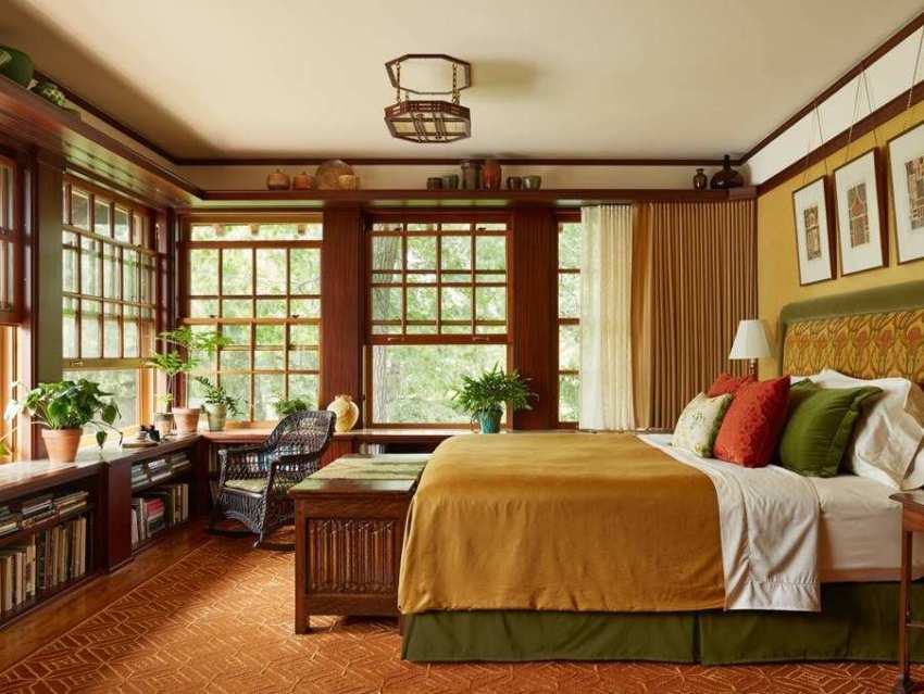 A comfortable reading area can be arranged in the bedroom, equipped with a soft armchair and a table with a small surface. It is better to use local lighting, but rather intense. These can be wall lamps with a swivel shade or floor lamps.