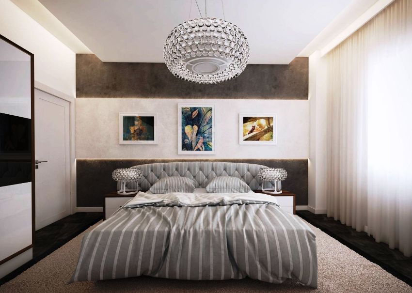 Quite often, a bedroom chandelier provides an overall level of illumination. This should be a model with powerful light beams, the directivity of which will create the necessary visibility in each area. In any case, it is light for the whole room.