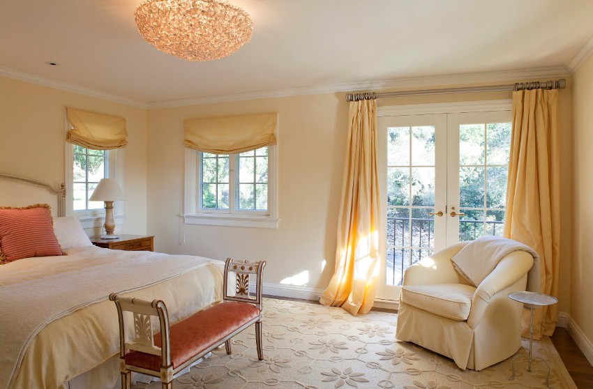 Before the final choice of a chandelier in the bedroom, you should think about how to combine it with other lighting sources