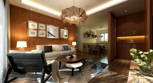 - If the room is equipped with dimensional wooden furniture, you should not choose a chandelier from the same material, but the dimensions of the ceiling lamp should be proportional to the overall one. A model with large shades made of translucent tinted glass is suitable.