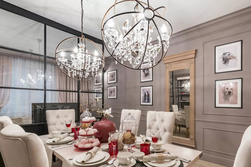 In the case of using two chandeliers, it is not necessary to choose the same model. They may differ in size or design. It is important that the products are close in stylistic design. This technique will create the effect of surprise, making the design of the room unique. In a room with high ceilings, the chandeliers can be located at different heights.