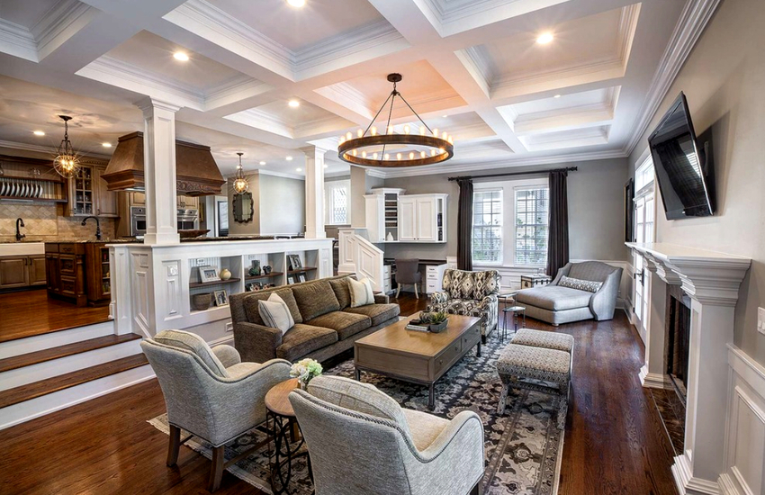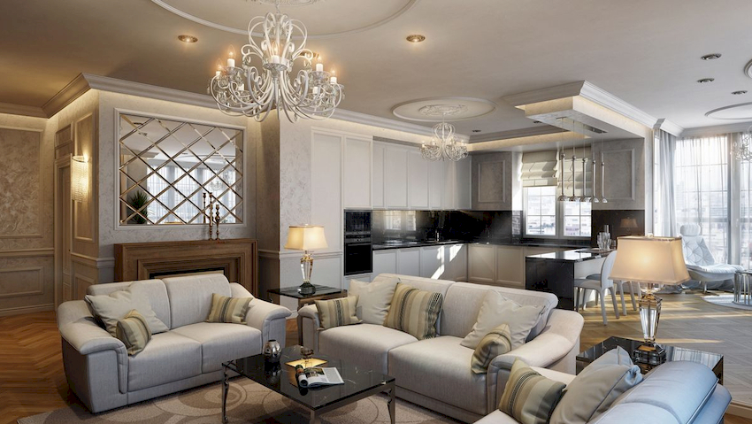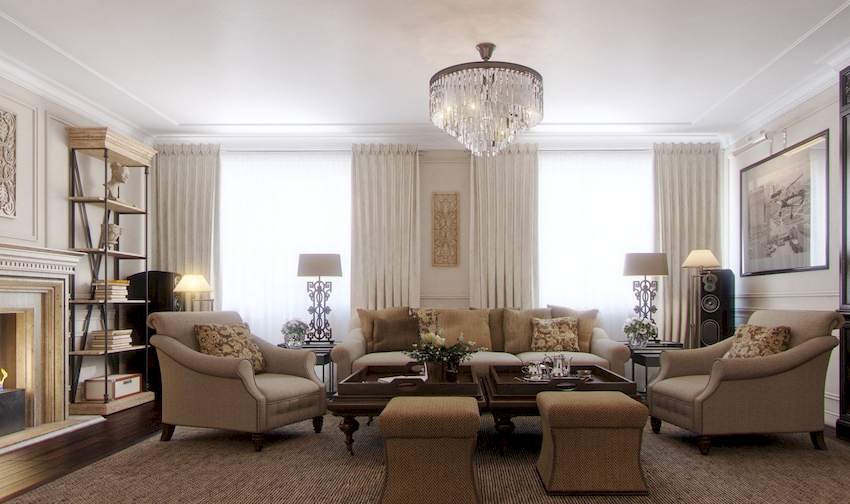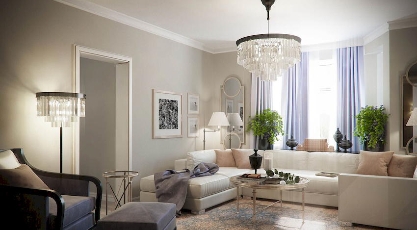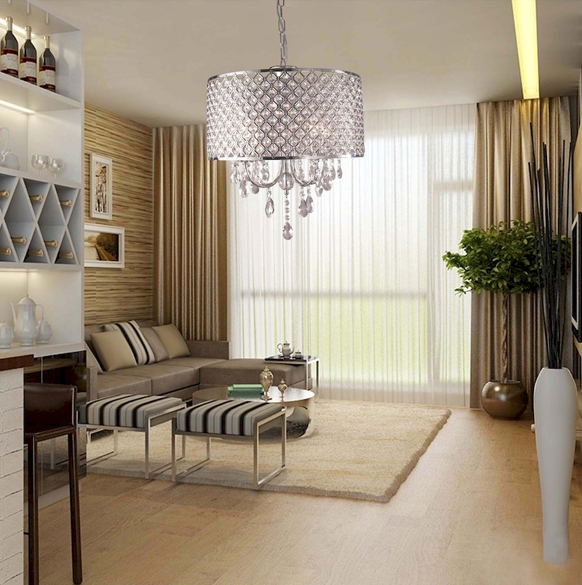 A properly selected chandelier can bring harmony and comfort to the atmosphere, making the living room design complete
