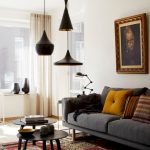 A type of hanging lighting fixtures is a hanging model on a bar. This additional element allows you to adjust the height of the product. By lowering the chandelier, you can highlight the accent element of the room, by raising it, you can create diffused lighting in the living room. Rod chandeliers are often sold complete with a floor lamp.