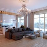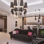A modern chandelier in the hall is the main element of room lighting. She is able to bring harmony and comfort to the atmosphere, making the living room design complete. Being an accent element and at the same time a connecting link between other objects rooms, chandelier emphasizes the stylistic orientation of the interior.