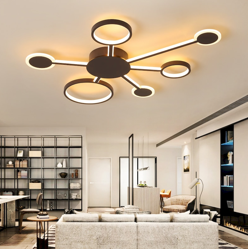 A wide range of modern living room chandeliers allows you to choose a lighting fixture for any size and room design. Chandeliers differ in the number and type of lamps used, which allows you to play with lighting, setting the required intensity of the light flux. Lighting devices are presented in a wide variety of shapes. There are abstract compositions, models in the form of geometric shapes, products where different types of lamps are combined, and candle imitations are created.