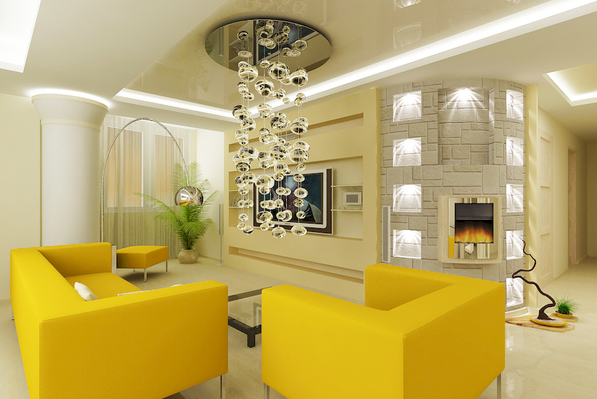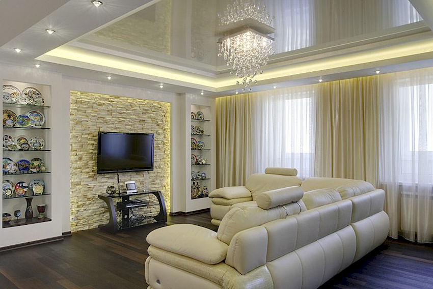 Features of the choice of chandeliers in the hall on a stretch ceiling