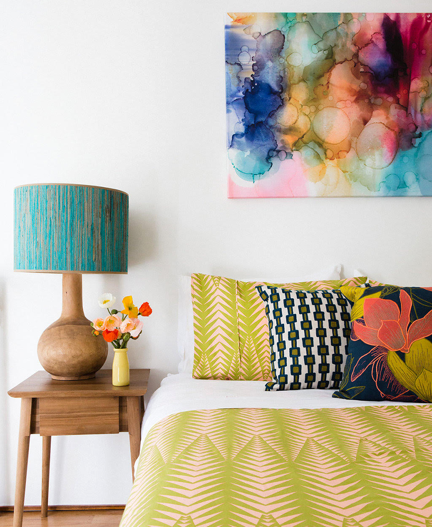 Basically, the color of the lamp is selected based on the overall style of the room. The shade of the lampshade should match the color of the surfaces in the bedroom, but it is not at all necessary that it be the same tone. If we consider that most often the walls in the bedroom are light, then there will be no difficulties with the choice of a lamp, because with the right approach, any shade will look attractive here. The main thing is that the room contains additional elements of the same color, even small details.