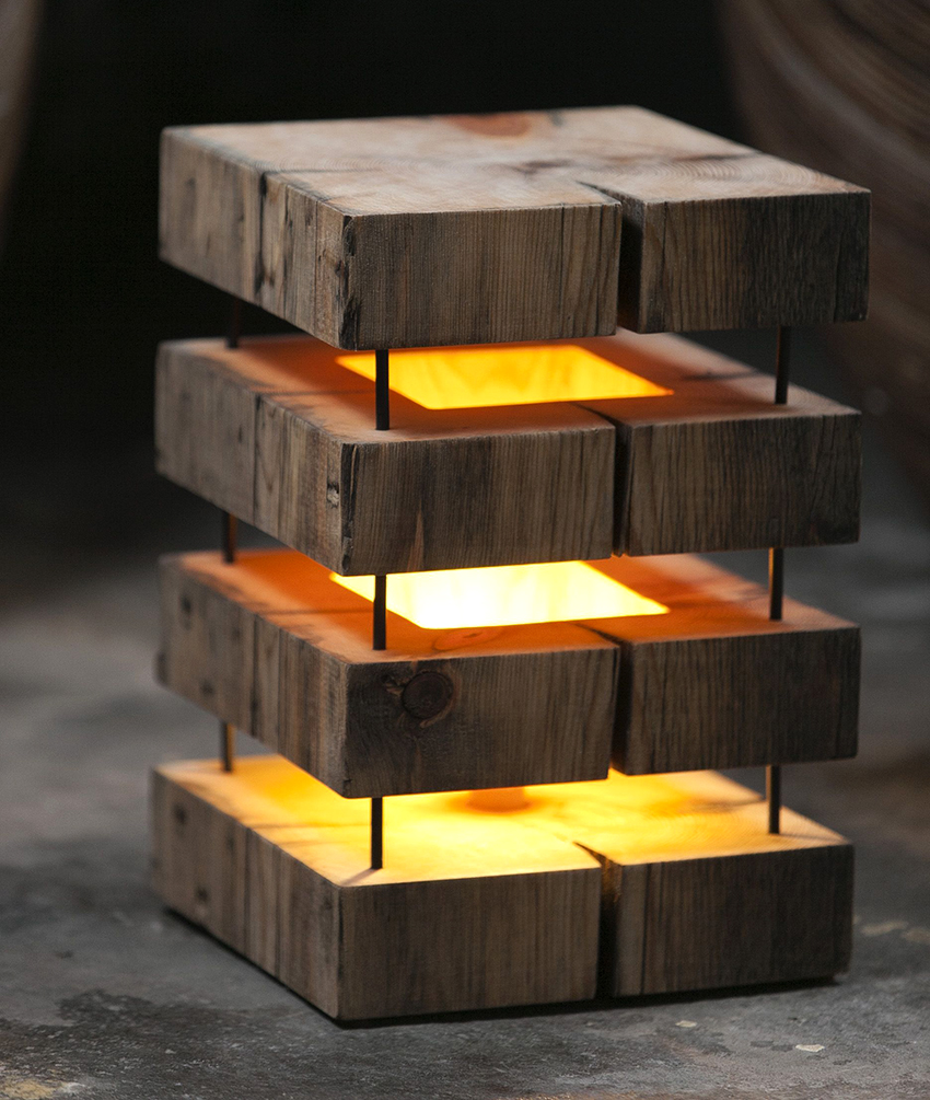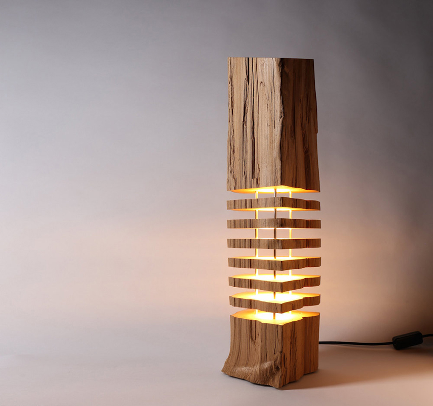 Exclusive floor lamps and table lamps made of wood in retail outlets will cost a lot, which cannot be said about self-made devices. Those who have a lathe are most easily able to design the device. In this case, a homemade wood lamp can be made using an edged beam, the length of which must correspond to the selected height of the device.