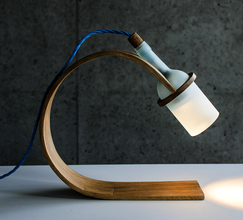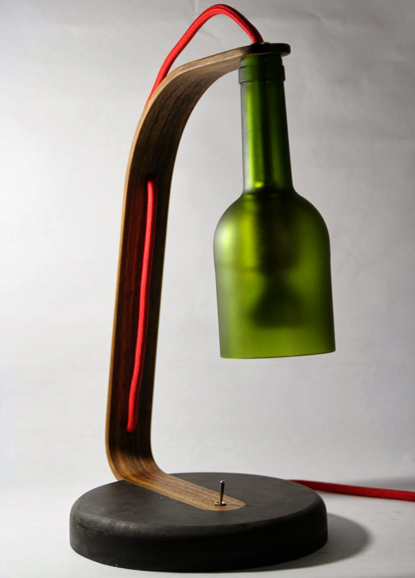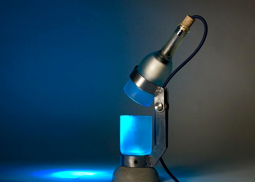 After the surface is cleaned, you need to place the bottle in the cutter, adjust the glass cutter to the required level and rotate the bottle to get an even cut. Then it is placed in a "contrast shower" for several minutes until it disintegrates along the cut. For greater evenness and accuracy at the cut point, you should walk with sandpaper. The wire is carefully pulled through the neck of the bottle, after which the base with the lamp is screwed to the cable. To keep the cable firmly, a suitable chopik is inserted into the neck.