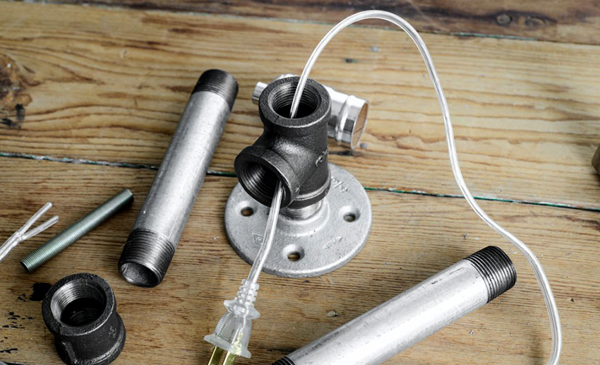 If we talk about the internal filling of the lamp, then everything is extremely simple, because the device consists of a power plug, a cord, a switch and a bulb holder. Those who are not alien to technical questions can supplement a homemade device with a voltage regulator. Whichever chuck is chosen, it is attached to a thread or steel plate.