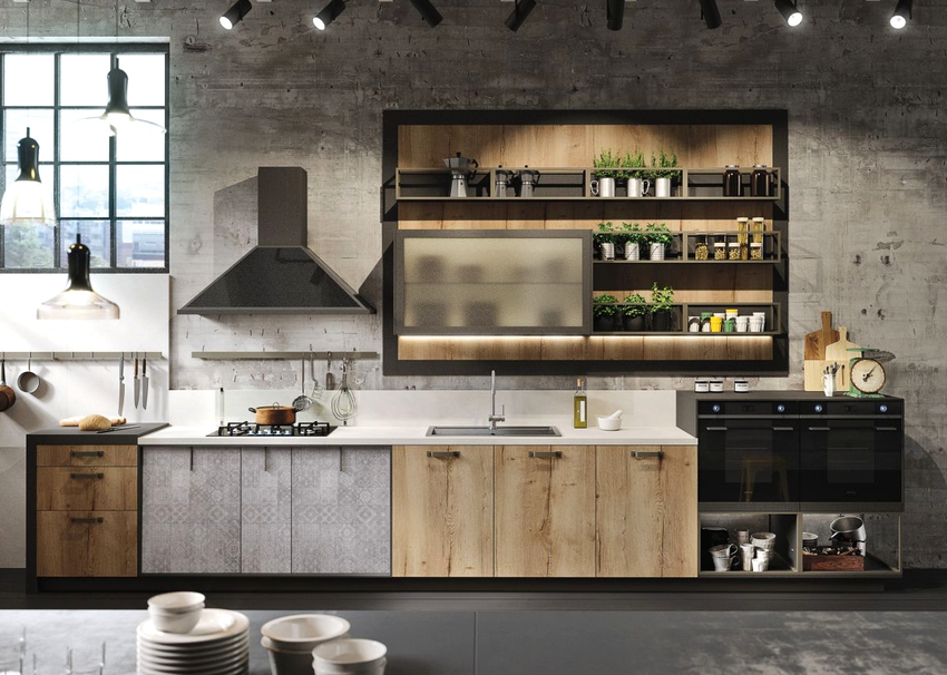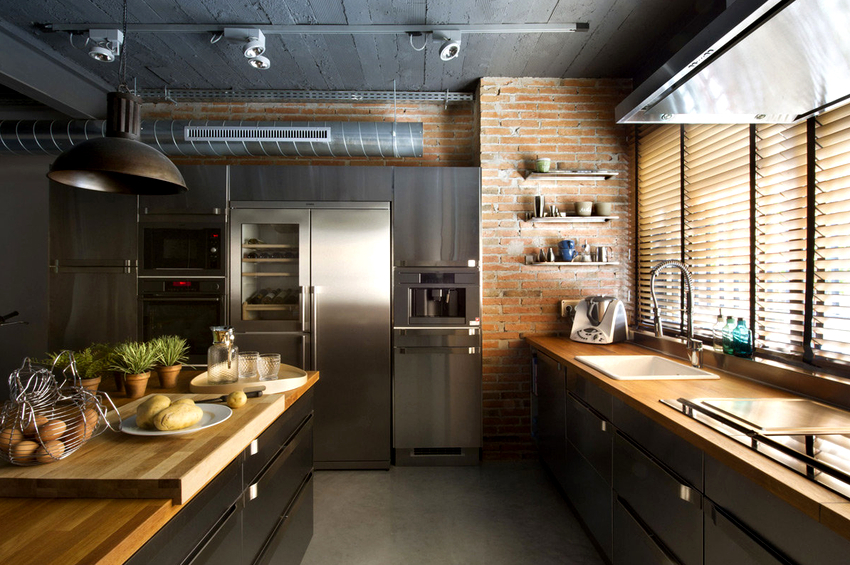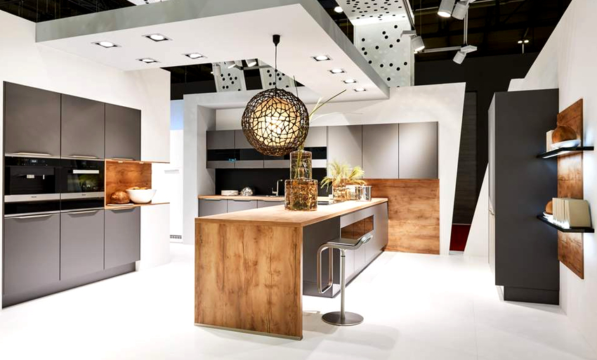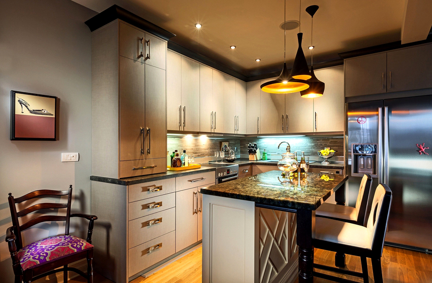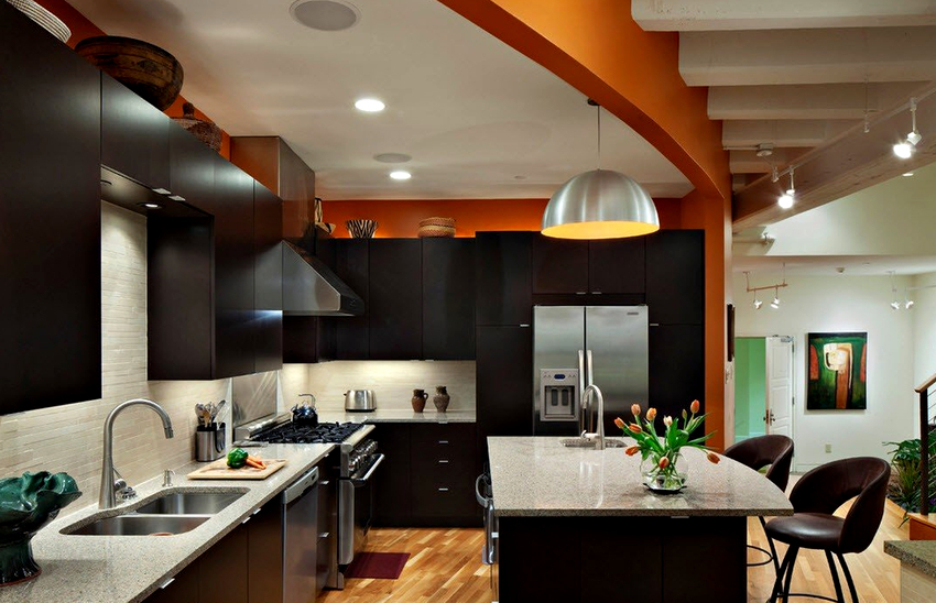 You can create attractive visual effects by combining different lighting options in your kitchen. In this case, all lighting fixtures should be selected in the same style in order to harmoniously fit into the overall concept of the interior of the room.