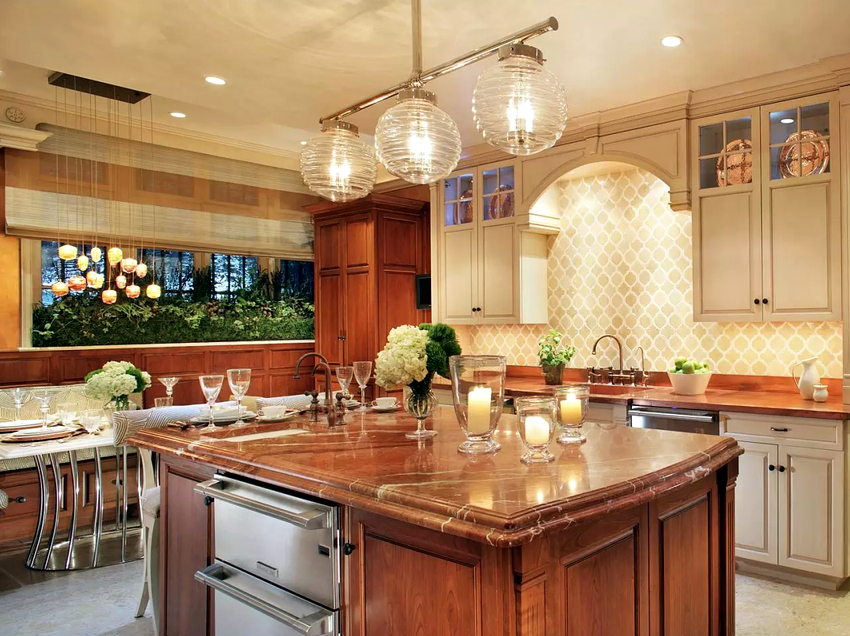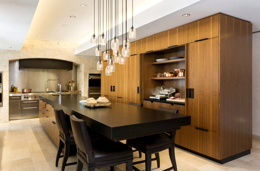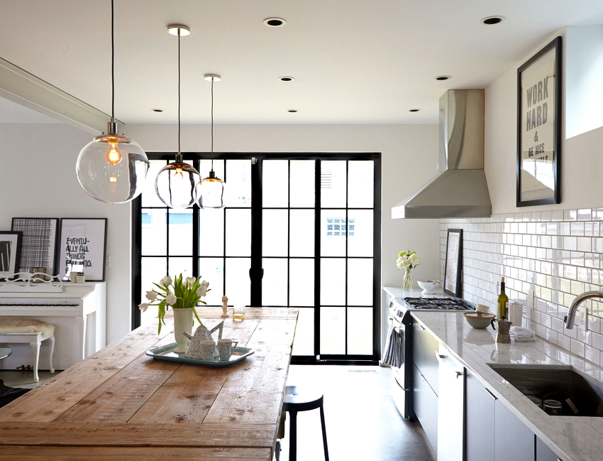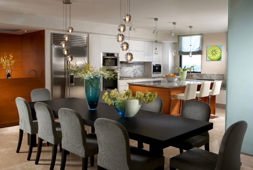 In the case of using a pendant lighting option in the kitchen above the table, it is better to give preference to models that have adjustable suspension length
