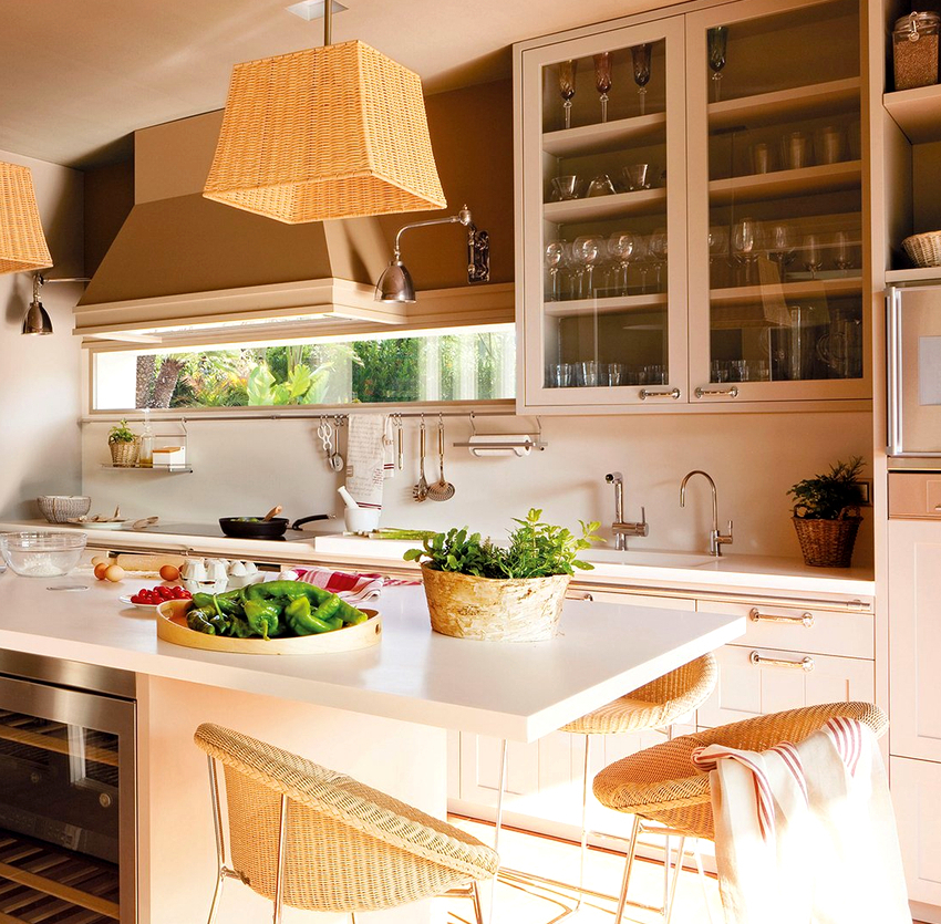 There are several requirements for proper lighting in the kitchen. It is necessary that the light in the room is evenly distributed over the entire area, excluding the occurrence of darkened areas. The shade should not fall on the work and dining areas. The lamps are positioned so that they do not shine in the eyes and do not create glare.